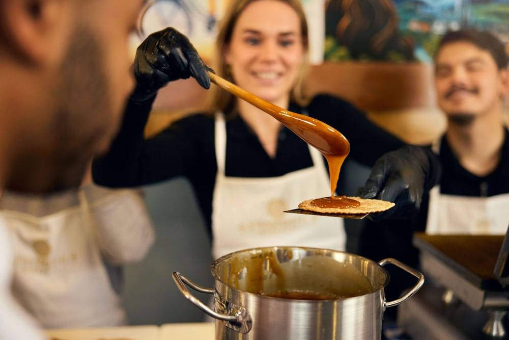 Your experience begins in a welcoming Amsterdam bakery where the smell of caramel and warm dough sets the mood. After meeting your friendly instructor and hearing the surprisingly fascinating history of the stroopwafel — a Dutch staple since the 18th century — you'll watch a live demonstration of the traditional technique.